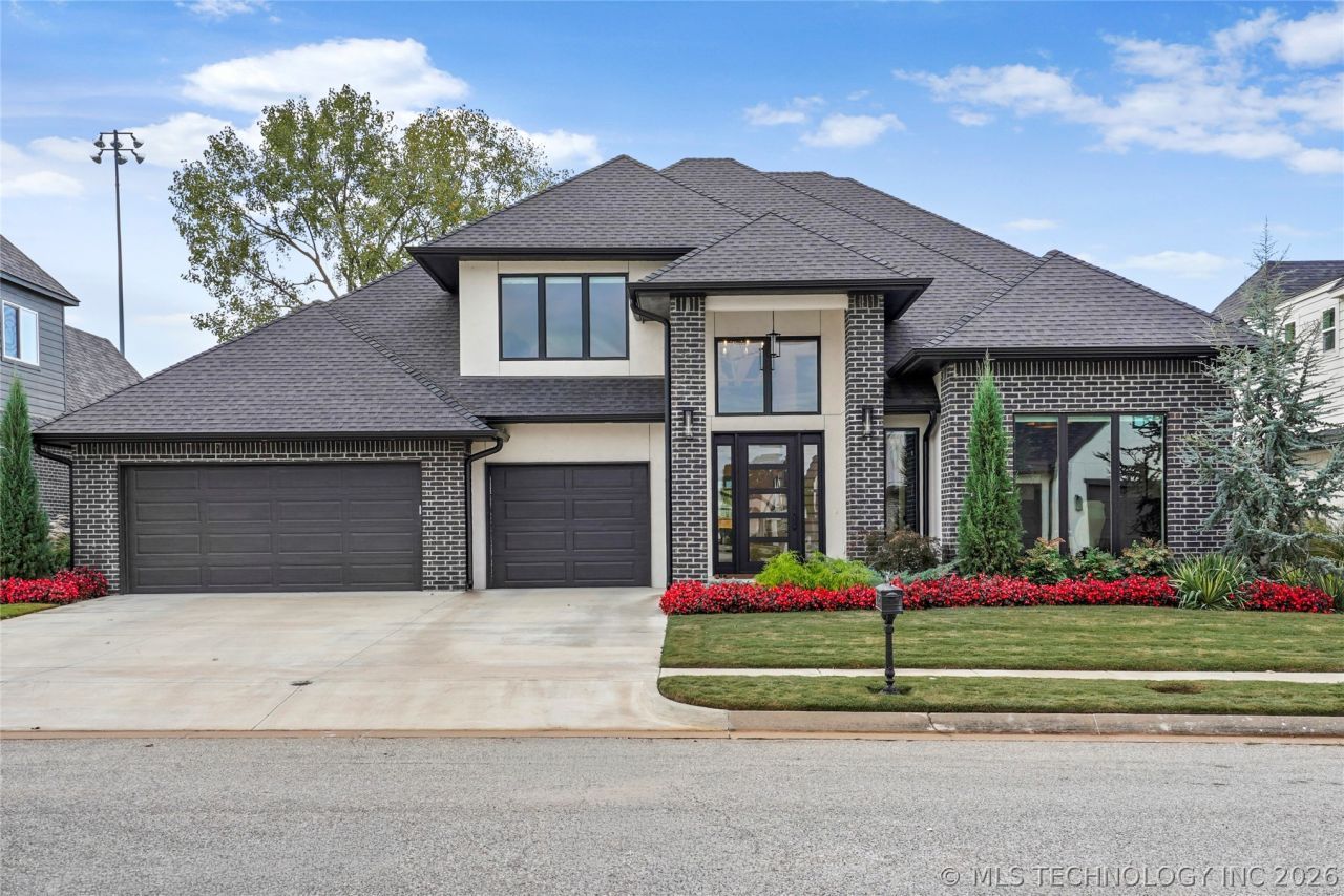 Experience refined living in this like-new Chase Ryan masterpiece, perfectly situated in a premier gated community with the coveted Jenks School District. This elegant 4-bedroom, 4.5-bath residence showcases exceptional craftsmanship, soaring vaulted ceilings, and an open, sun-filled floor plan designed for both comfort and entertaining. The chef's kitchen is a true showpiece with quartz countertops, an oversized island, coffee bar, an an expansive walk-in pantry. Two private suites are conveniently located on the main level, offering flexibility for family or guests. Premium details abound - 6-foot exterior walls, a tankless water heater, epoxy-coated garage floors with dual 220V EV plug-ins, and smart home features including a full sprinkler and security system. Enjoy outdoor living in the fully fenced backyard, offering privacy and space to unwind. A perfect harmony of luxury, functions, and modern design - this home truly has it all.
