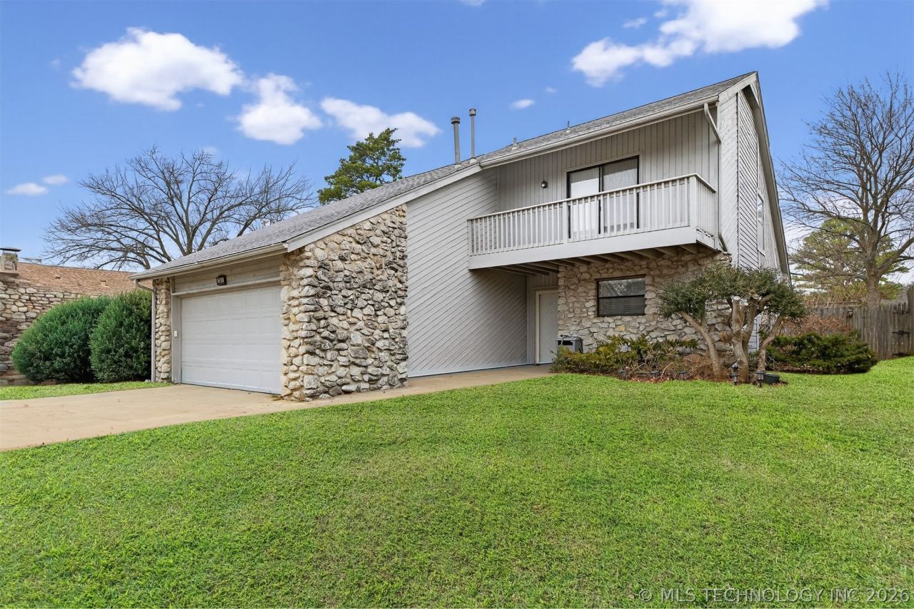 Welcome to this spacious and inviting patio home in a prime South Tulsa location within the desirable Jenks-East school district. Featuring 4 bedrooms, 2.5 baths, and a 2-car garage, this home offers comfortable living with thoughtful details throughout. Vaulted ceilings and large rooms create an open, airy feel from the moment you step inside. The oversized family room includes a cozy fireplace and is perfect for relaxing or entertaining. The kitchen features tile floors, a breakfast bar, and plenty of prep space ideal for everyday living. The primary bedroom is conveniently located downstairs, offering privacy and ease. Upstairs, you'll find generously sized bedrooms and a charming balcony to enjoy morning coffee or evening sunsets. Recent interior paint adds a fresh touch, while the layout ensures flexibility for all lifestyles. A low maintenance patio space in back adds to the appeal, perfect for gatherings or quiet moments outdoors. With its great floor plan, quality updates, and unbeatable location near shopping, dining, and schools. Don't miss this exceptional opportunity in one of Tulsa's most sought-after areas.